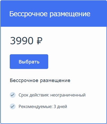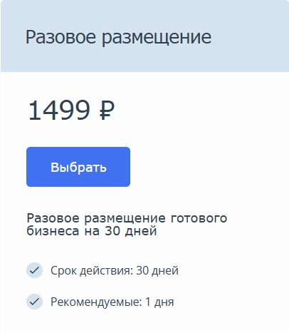 При публикации объявления о продаже готового бизнеса доступно два тарифных плана. Разовое размещение: объявление будет опубликовано на 30 дней. Бессрочное размещение позволяет опубликовать объявление на неограниченное время. Оно будет активно до тех пор, пока вы сами его не отключите.